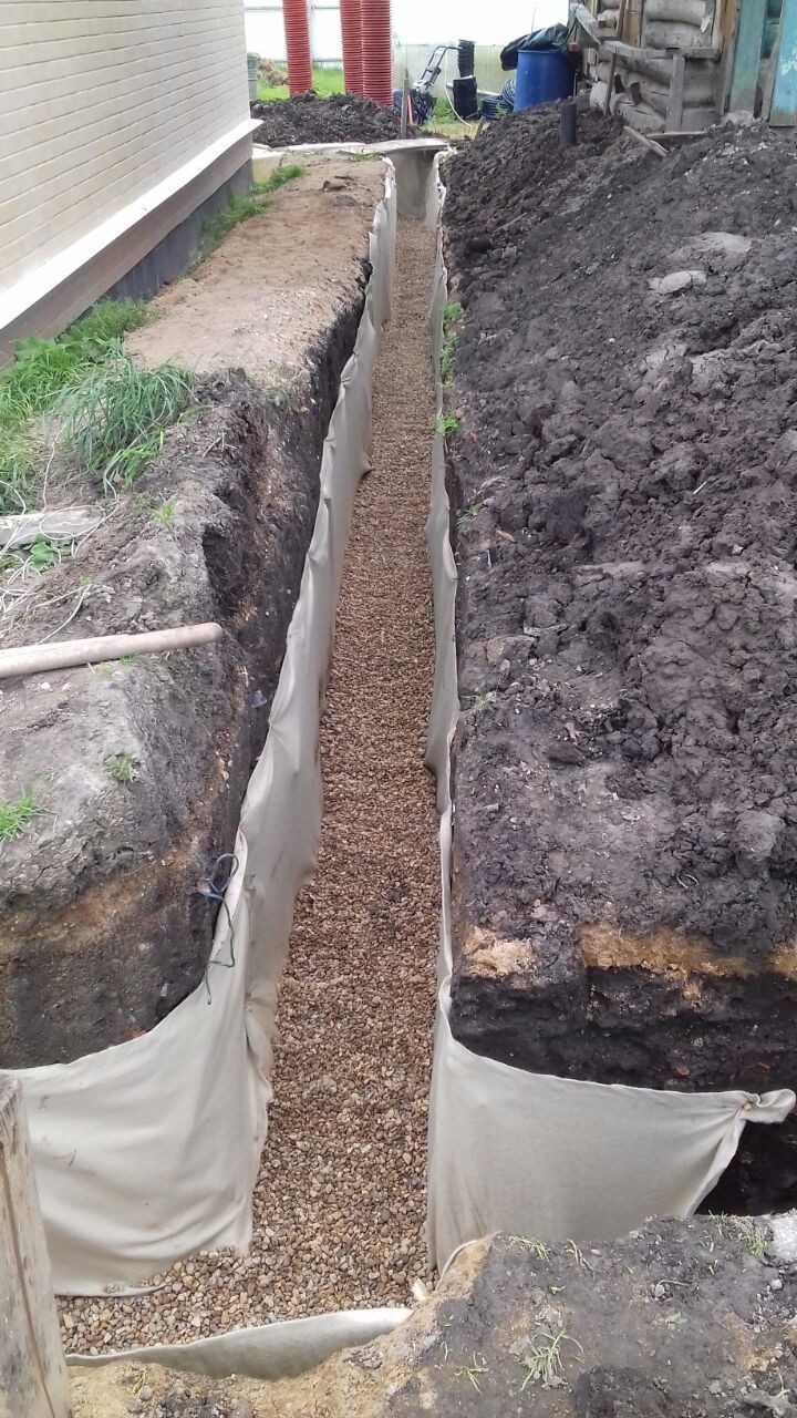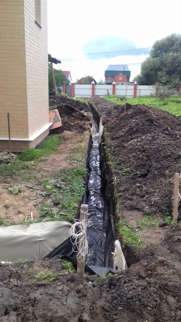 • на расстоянии 50-70 см от фундамента обустраивается система траншей определенной глубины;