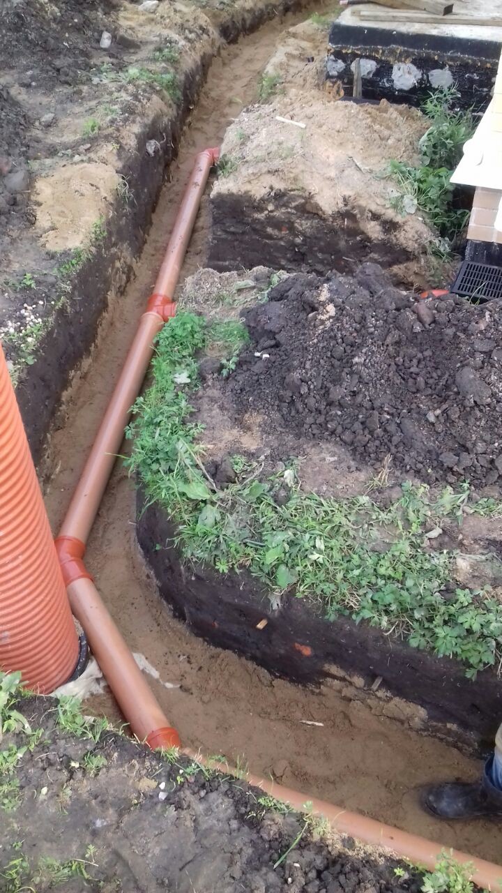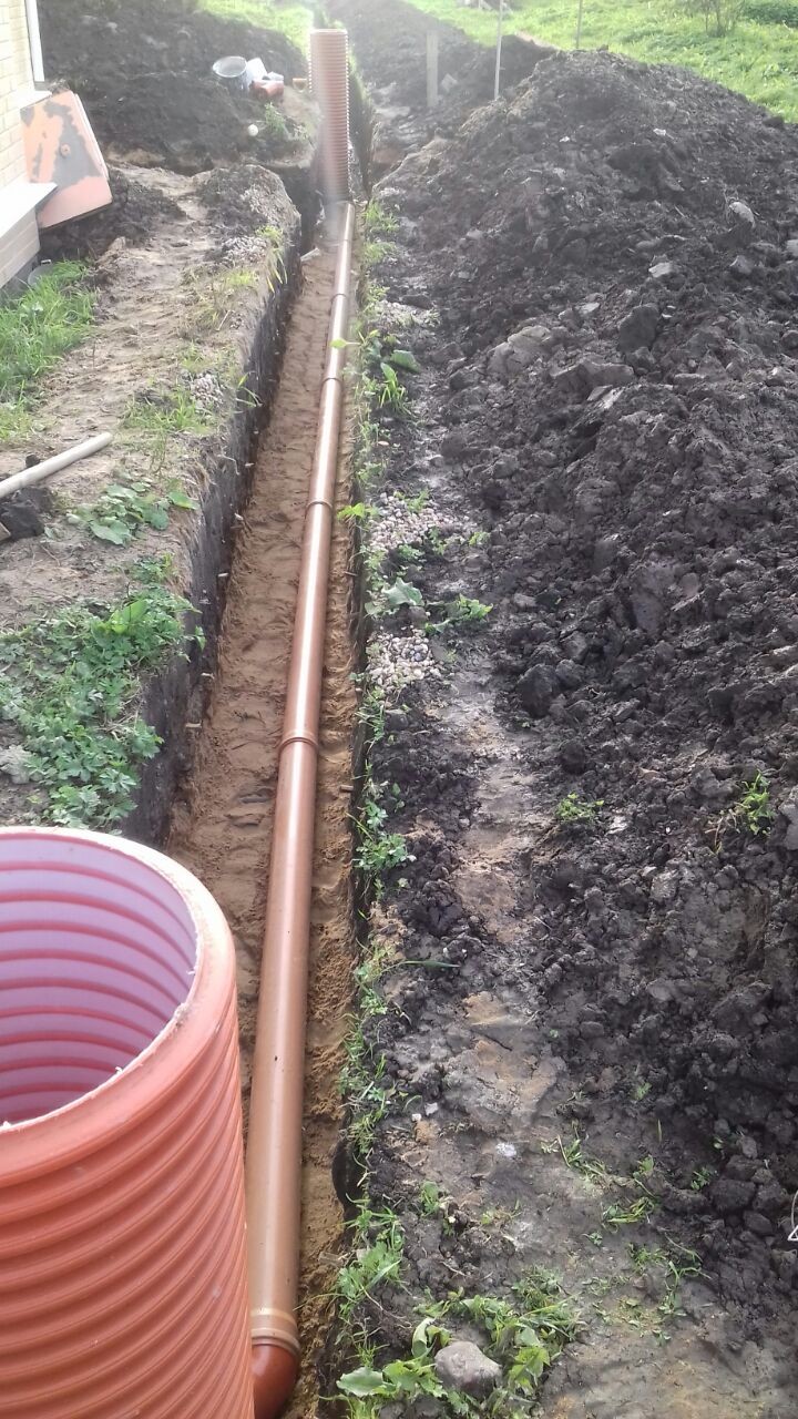 Прокладка кабеля и трубопровода для отводки воды 250 руб./п.м.